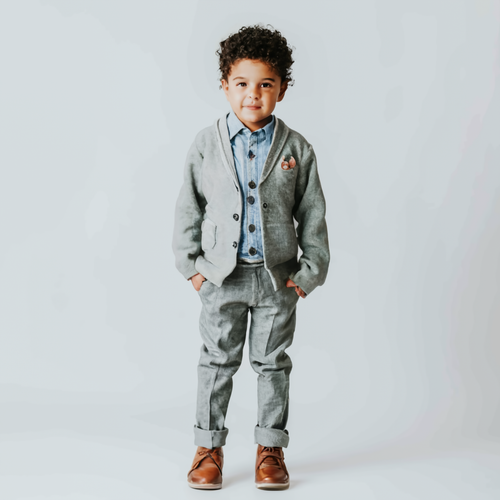 Boy's Button-up V-neck Knit Cardigan