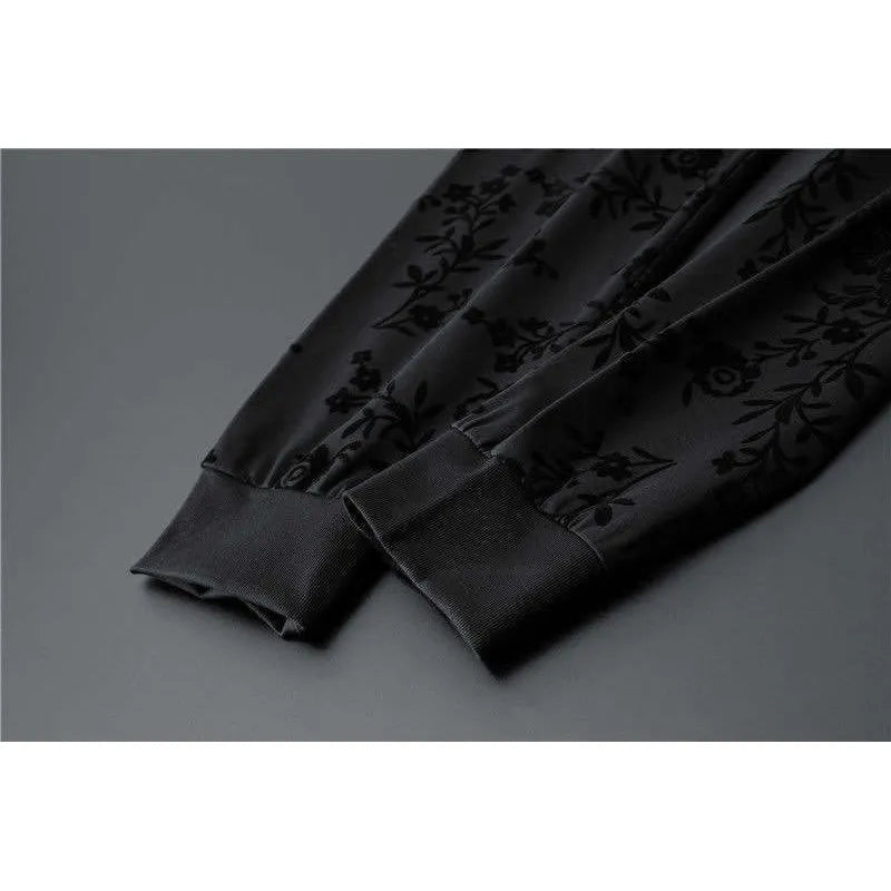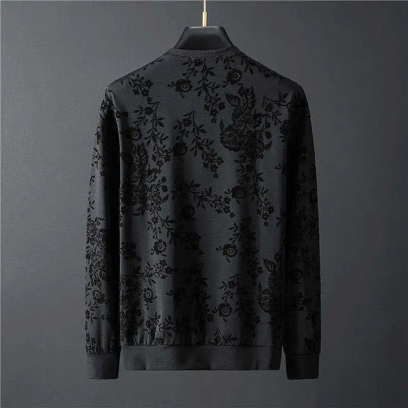 Men's Elegant Jacquard Round Neck Long-sleeved Sweatshirt and Trousers Two-piece Outfit Set