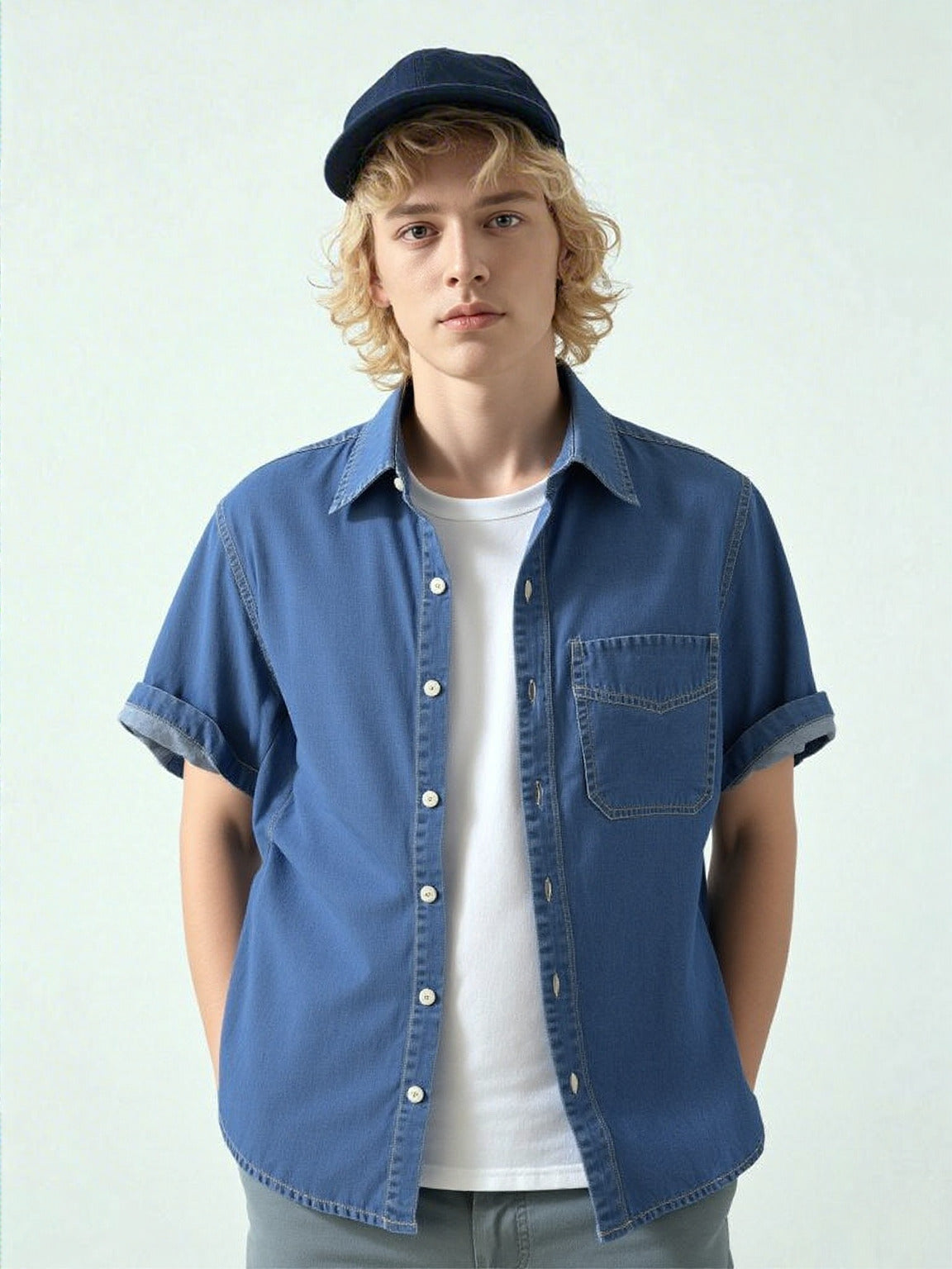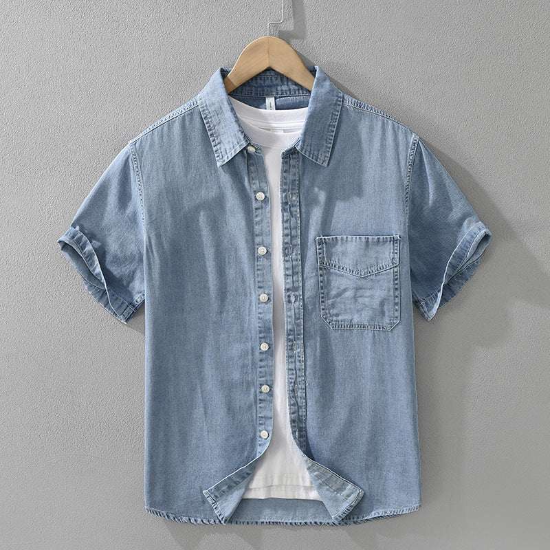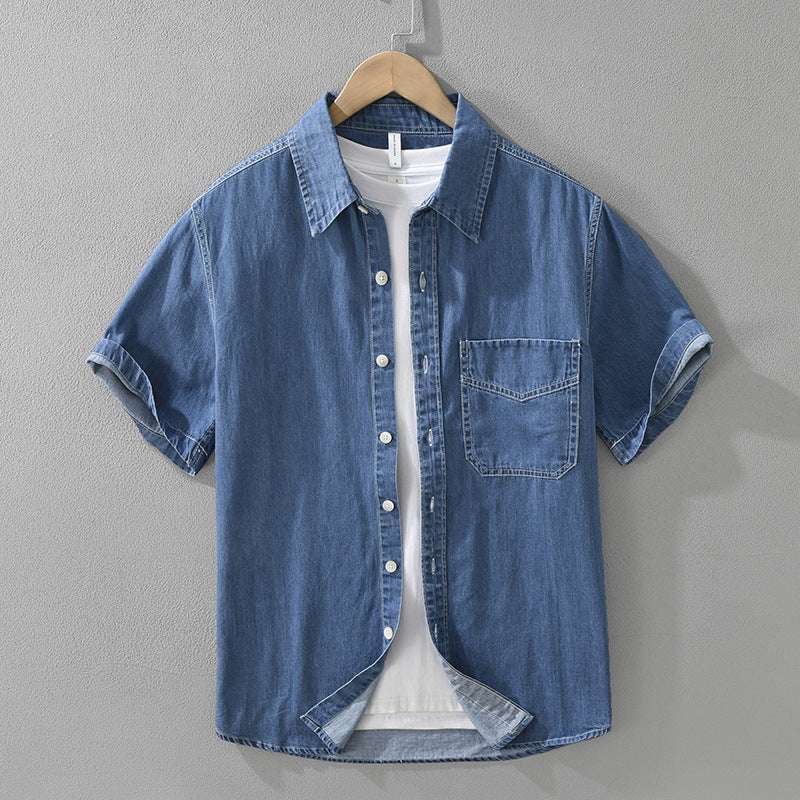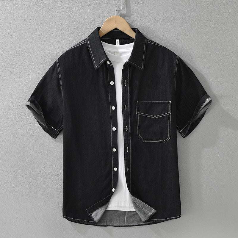 Men's Retro Denim Short Sleeve Shirt