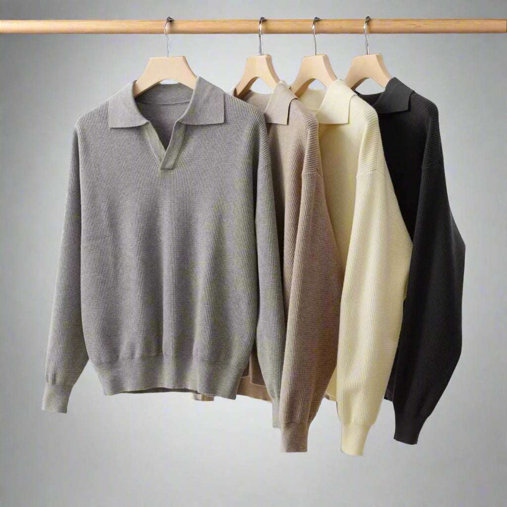 Men’s Polo Sweater – Solid Color, Long Sleeve, Casual Slim Fit