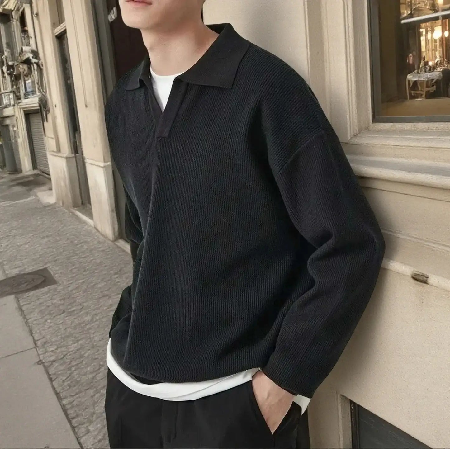 That’s where the Men’s Solid Color Polo Sweater changes everything.