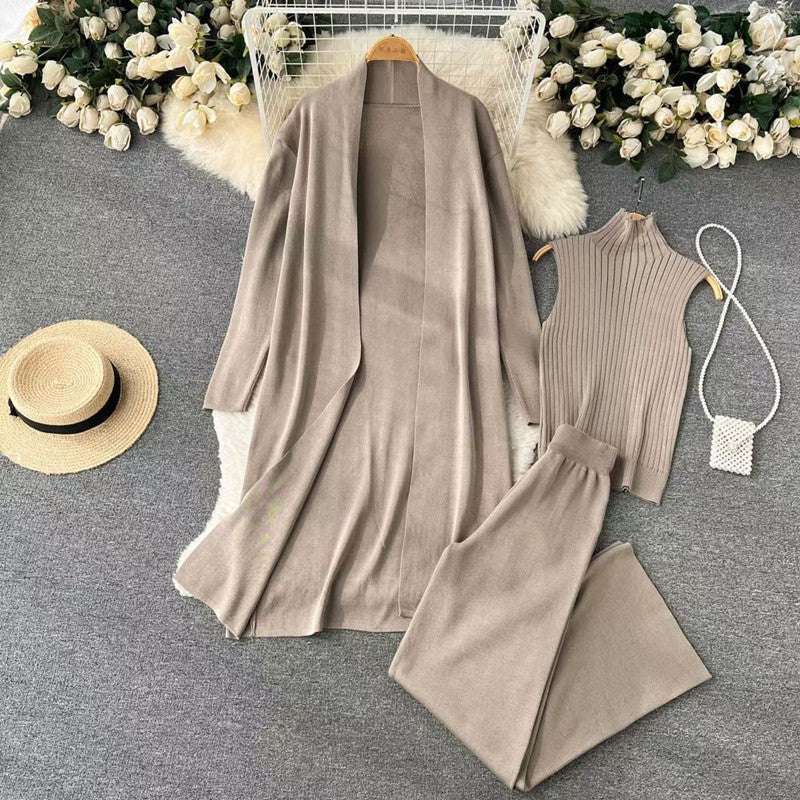 Women's Casual Knitted Three-piece Outfit Set