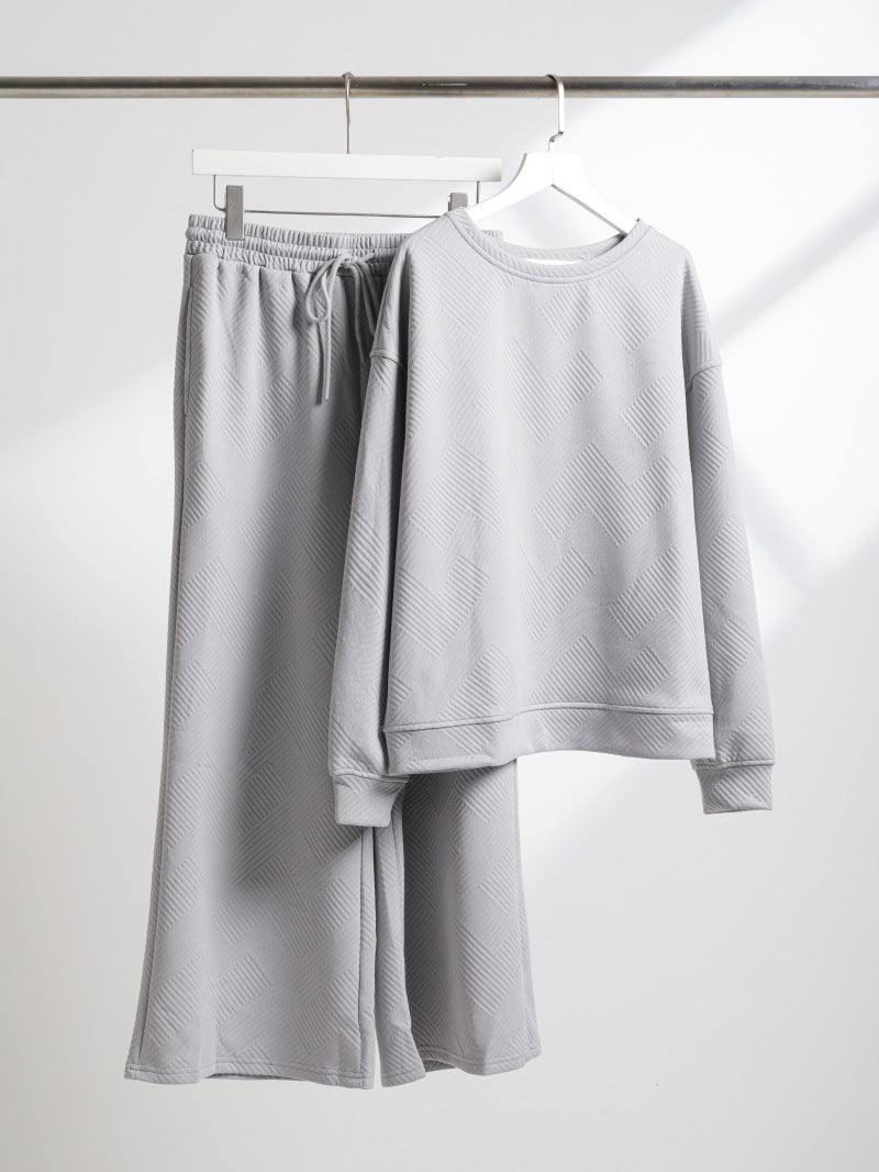 Women's Casual Textured Solid Color Loose Thick Long Sleeved Sweatshirt and Pants Two-piece Outfit Set