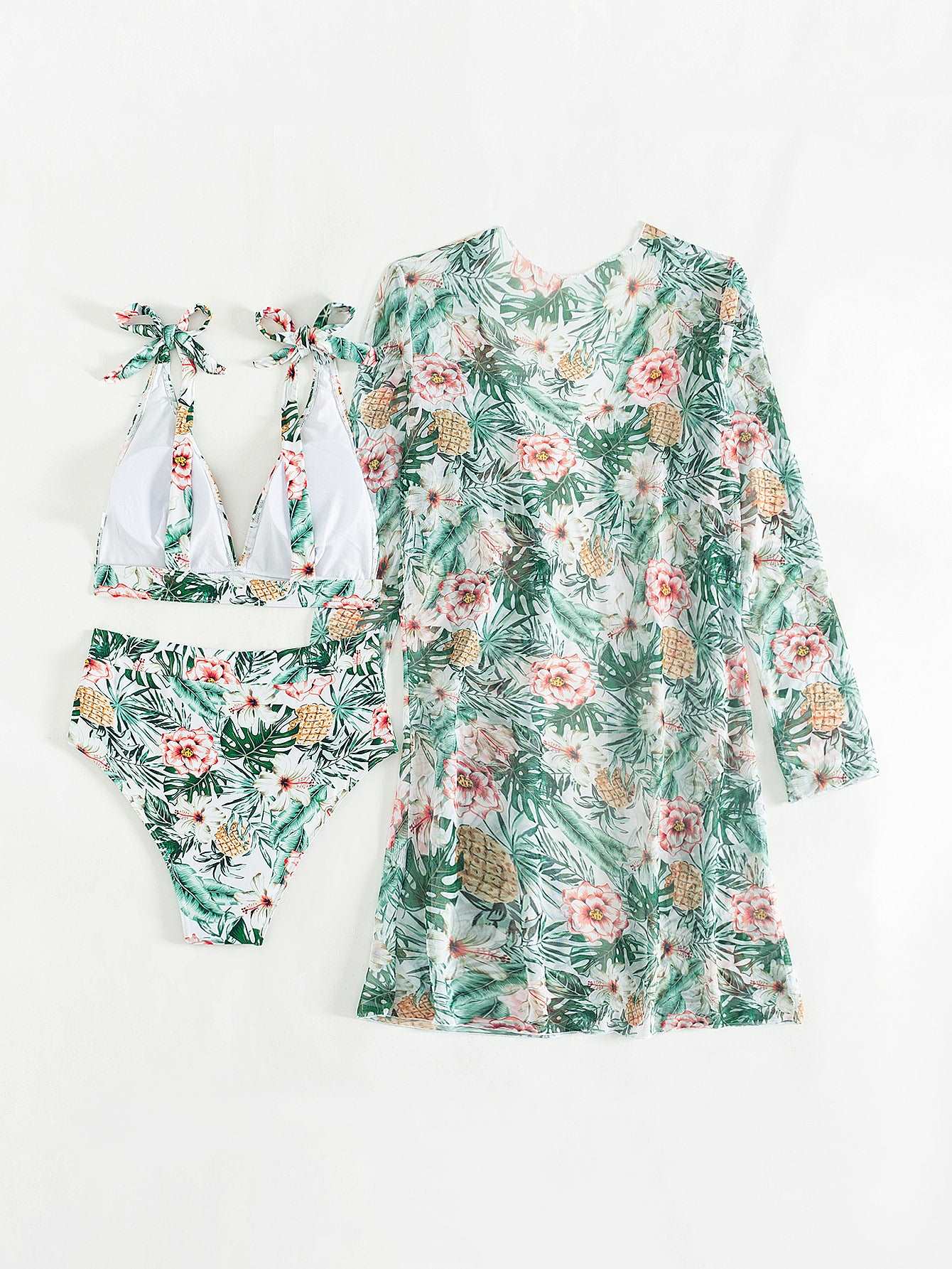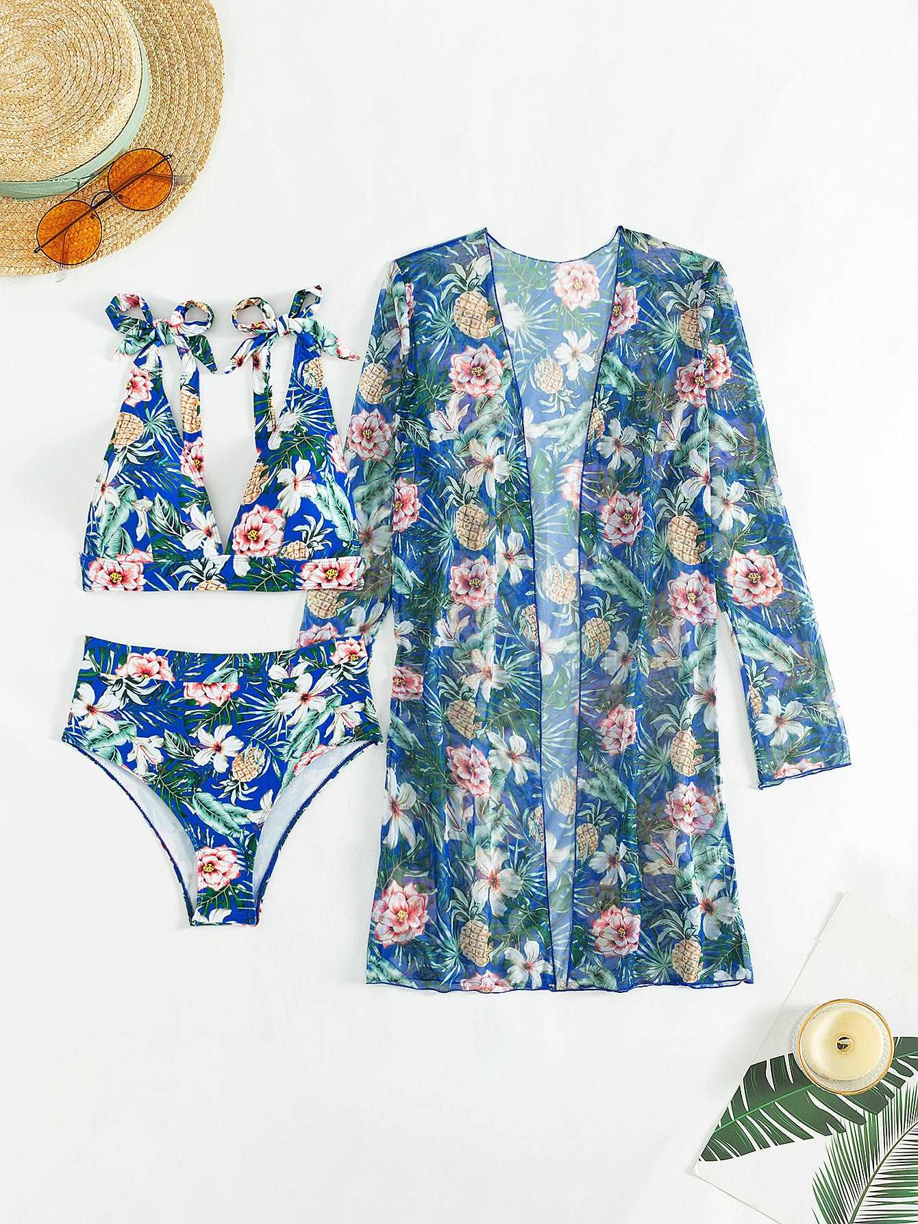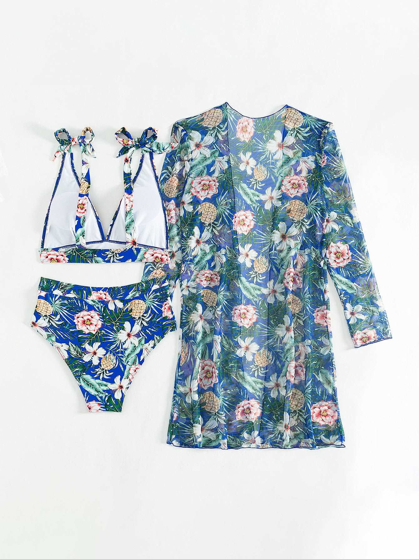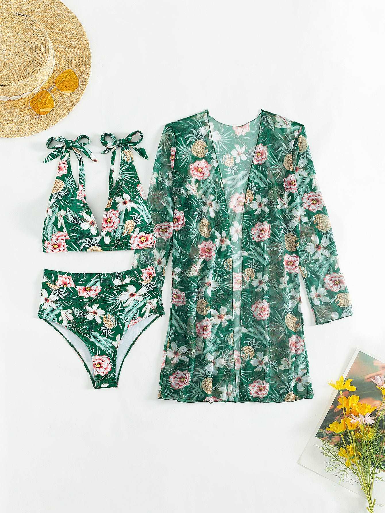 Women's Multicolor Printed Two-piece Swimsuit with Cover-up Robe